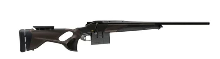 Blaser R8 Ultimate X jagtriffel i kaliber .30-06 med 58 cm løb, M15x1 gevind samt justerbar kindpude og bagkappe. Blaser R8 Ultimate X er en banebrydende jagtriffel, der kombinerer avanceret teknologi med robust konstruktion. Den er udviklet til jægere og skytter, der kræver det absolut bedste – både på jagt, til træning og konkurrence. Riflen har et ergonomisk thumbhole skæfte, der sikrer en afslappet hånd- og armstilling i alle skydestillinger. Skæftet er designet i mørkebrun med sorte grebsoverflader. Den justerbare kindpude og bagkappe giver mulighed for optimal tilpasning, maksimal komfort og kontrol. Skæftet reducerer desuden rekylfornemmelsen og forbedrer præcisionen, selv under krævende forhold. For første gang introducerer Blaser et 10-skuds magasin til R8-serien, hvilket gør denne model perfekt til trykjagt og skydetræning. Riflen har også Blasers Illumination Control (iC), hvor en sensor i okularet registrerer positionen af spændesystemet og automatisk styrer tænd/sluk-funktionen for det belyste sigte. Med et 58 cm langt løb i kaliber .30-06 Springfield og M15x1-gevind er riflen klar til montering af lyddæmper eller mundingsbremse efter behov. Denne riffel kombinerer robust konstruktion med avancerede funktioner, hvilket gør den ideel til jægere og skytter, der søger en pålidelig og alsidig løsning til krævende jagtforhold og/eller som langdistanceriffel.